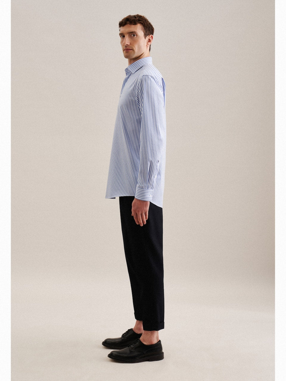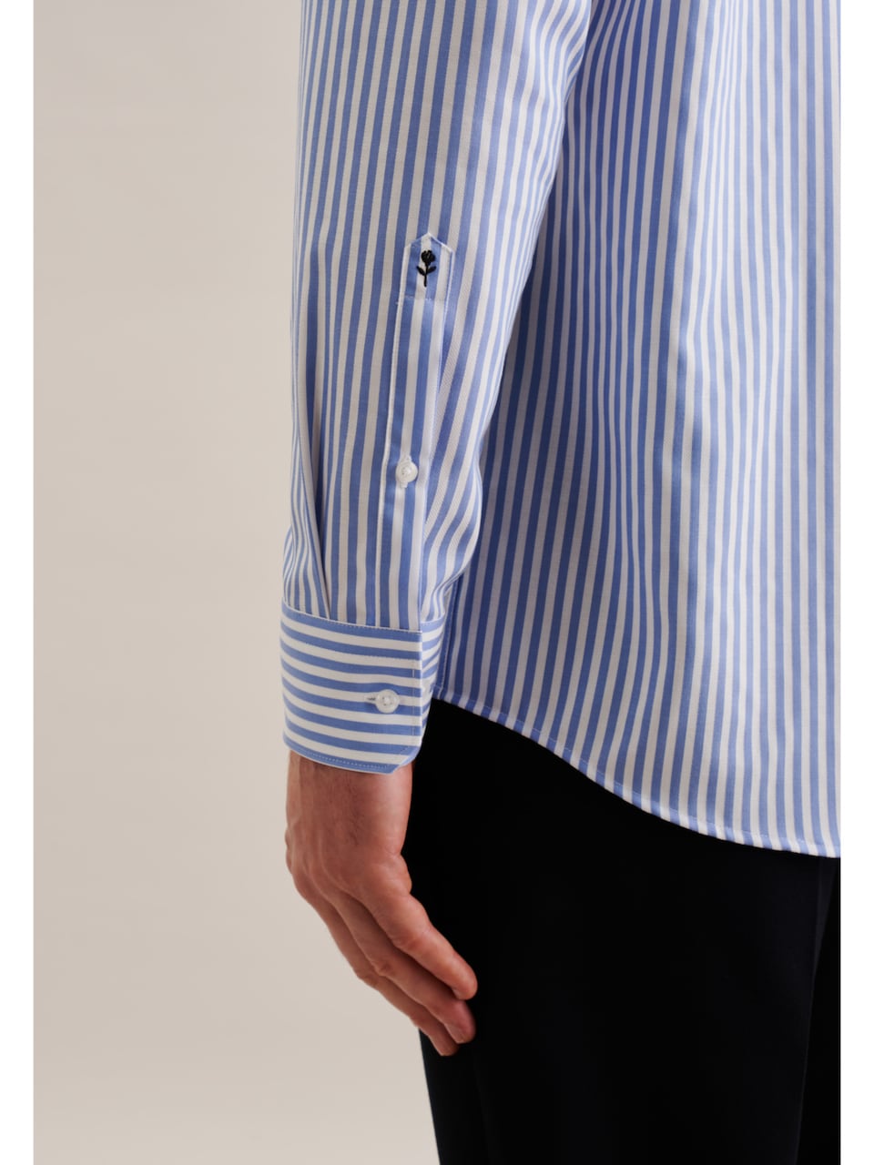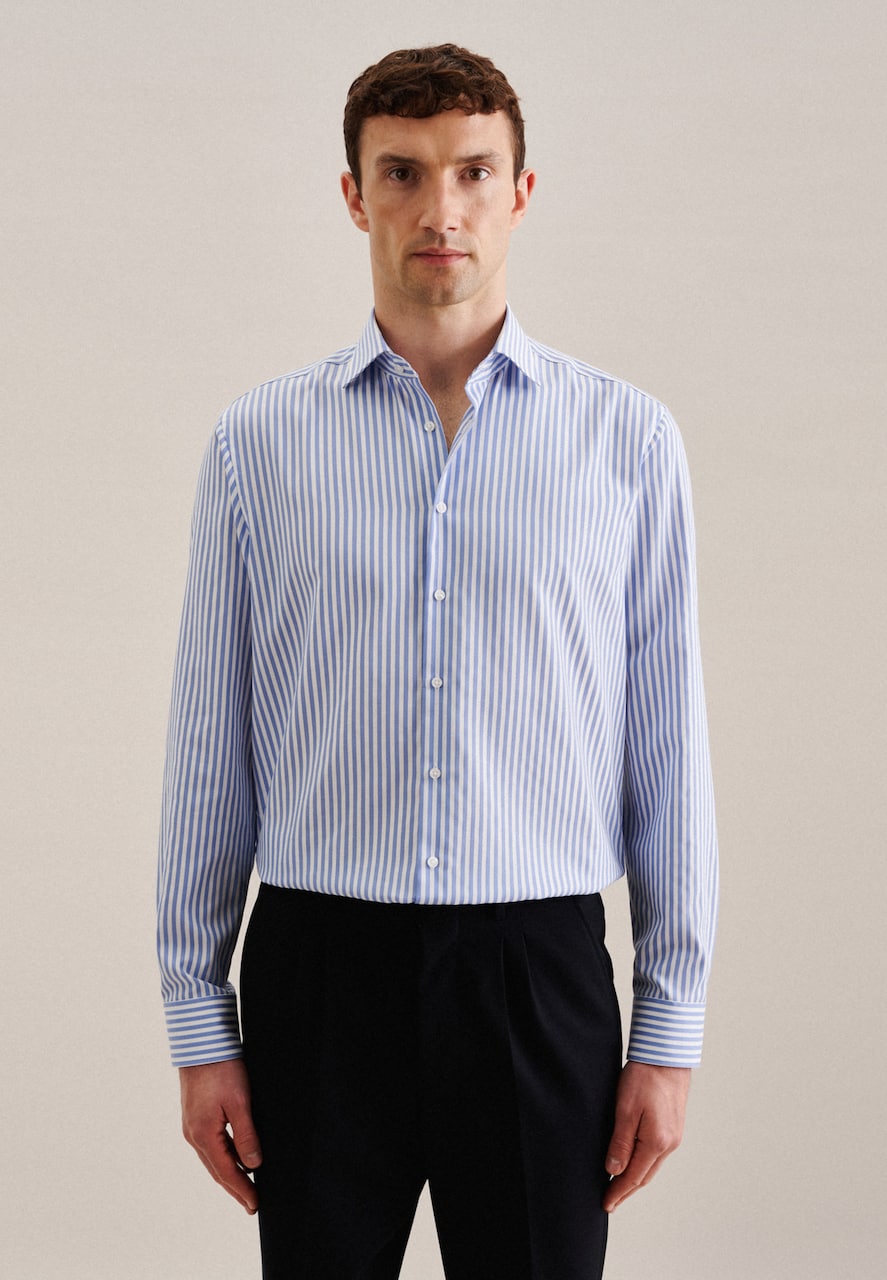 SEIDENSTICKER Regular Fit Business Hemd Blau Denim/Weiß, Langarm, Kentkragen