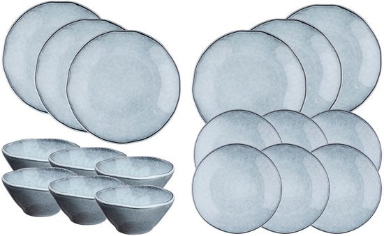 Das Geschirr Essentials enthält die drei wichtigsten Teile für sechs Personen: eine geräumige Schüssel, einen großen Teller und einen kleinen Teller. Das sind die Basics, die man täglich für alle Mahlzeiten braucht.