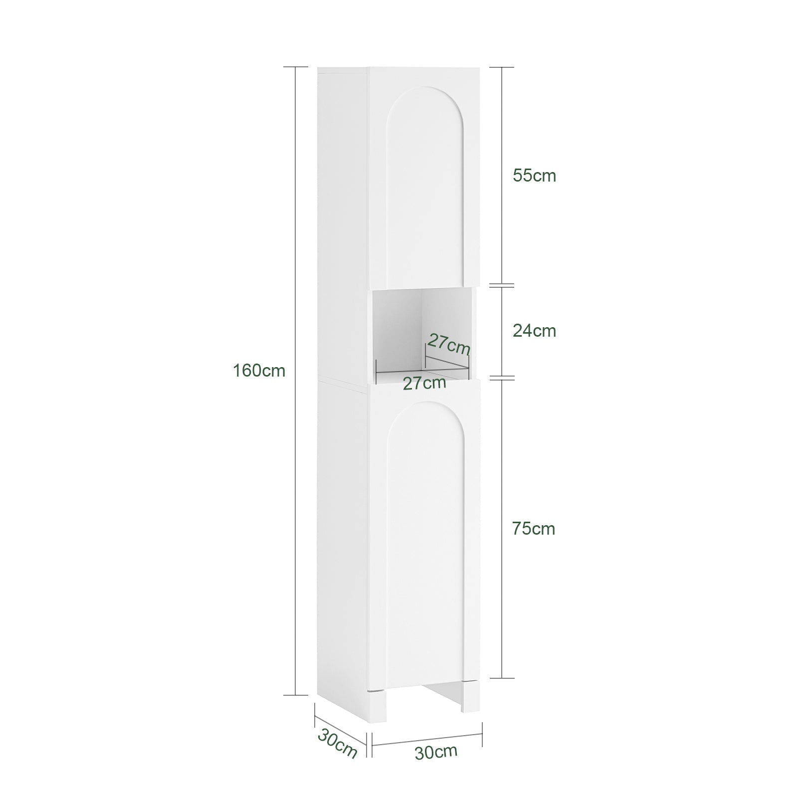 SoBuy BZR163-W Hoher Badezimmerschrank mit 2 Türen und 6 Fächern - Schmaler Aufbewahrungsschrank mit offenen Fächern - Weiß - 30x160x30 cm