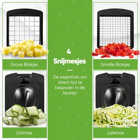 Stosh Mandoline - Gemüseschneider - Zwiebelschneider - Spiralschneider - 4 Stück - Schwarz - BPA frei