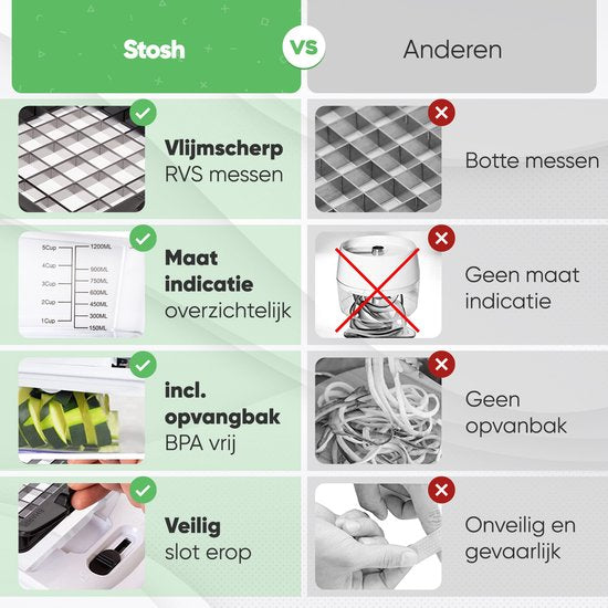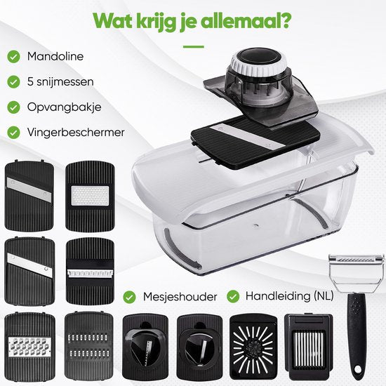 Stosh Mandoline - Gemüseschneider - Zwiebelschneider - Spiralschneider - Reibe - Kunststoff - 11 Stück - BPA frei
