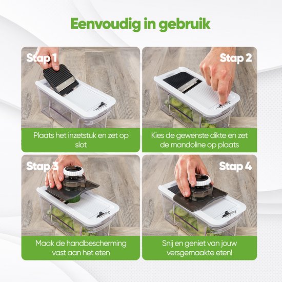 Liebst du auch leckeres Essen? Aber Sie finden es mühsam, ständig von Hand zu schneiden? Dann entdecken Sie die Mandoline von Stosh. Mit ihr können Sie Gemüse, Obst oder Kartoffeln bis zu 3x schneller schneiden. Schneiden. Raspeln. Spiralisieren. Mit den austauschbaren Einsätzen verwandeln Sie Ihre Mandoline im Handumdrehen vom Spiralschneider zum Schneidebrett und zur Reibe. So können Sie im Handumdrehen die leckersten Gerichte auf den Tisch bringen. Durchsichtig. Nimmt wenig Platz weg und ist leicht zu verstauen. BPA-frei. Schnell abspülen und aufwischen. Bereit für Ihr nächstes Gericht. Was steht heute Abend auf dem Speiseplan?