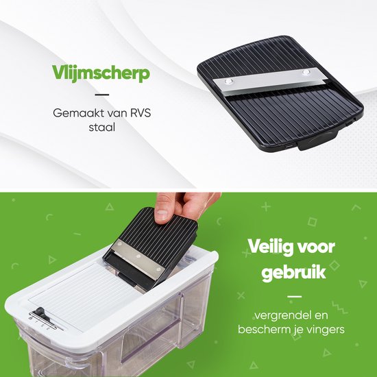 Hergestellt aus rasiermesserscharfem Edelstahl und robustem Kunststoff. Das garantiert, dass Ihre Mandoline ein Leben lang halten wird. Sie schneidet mühelos das härteste Obst oder Gemüse, wie Kartoffeln, Zwiebeln, Zucchini, Tomaten, Karotten und mehr.
