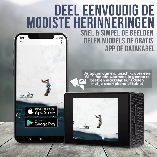 Die Actionkamera ist einfach zu bedienen. Sie kann mit den Tasten an der Kamera selbst oder mit der praktischen App gesteuert werden. Koppeln Sie zum Beispiel Ihr Handy mit dem WiFi der Kamera und steuern Sie die Actioncam von nun an mit Ihrem Handy. Lade die Kamera vor dem Gebrauch vollständig auf, achte auf das richtige Zubehör und halte die coolsten Momente fest.