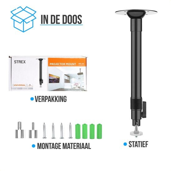 Suchen Sie nach einer Deckenhalterung für den Strex Beamer? Dann ist diese Halterung genau das Richtige für Sie! Diese Halterung wird von Strex hergestellt und speziell für den Strex Beamer entwickelt. Natürlich ist diese Halterung auch für andere Beamer geeignet.