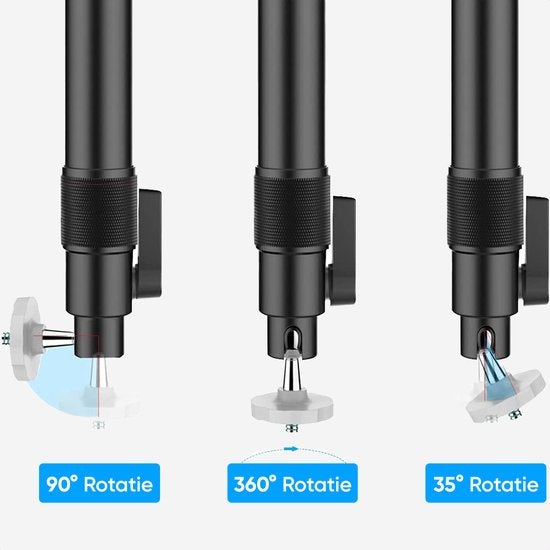 Einstellbare Höhe von 26CM bis 40CM. Unterstützt bis zu 35-Grad-Neigung, 90-Grad-Schwenkung und 360-Grad-Drehung. So haben Sie immer den richtigen Blickwinkel.