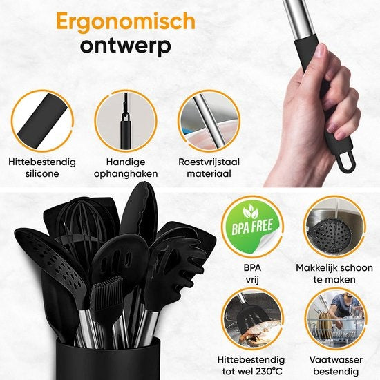 Neugierig auf das Kochen, aber es fehlt das richtige Zeug? Dieses 43-teilige Küchenutensilien-Set hat alles, was du brauchst! Mit hochwertigem Material, einem inbegriffenen Halter und stilvollem Design, wirst du deine Küche mit nur einem Set verwandeln. Kochen, grillen oder lieber backen? Dieses Silikon-Set kann wirklich alles. Löffel, Zangen, Messbecher & feinste Pfannenwender.