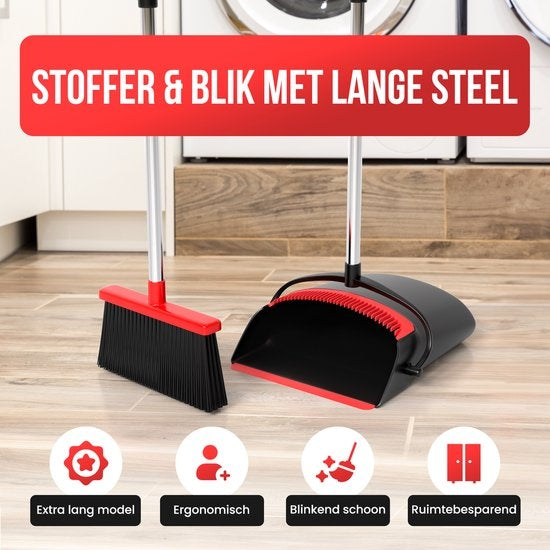 Strex Kehrschaufel und Bürste mit langem Stiel - verstellbar von 87-127cm - mit integrierten Reinigungszähnen