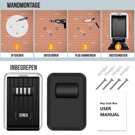 Strex Schlüsseltresor mit Zahlenschloss - Innen und Außen - wetterfest - Homecare - Schlüsseltresor - Schlüsseltresor für den Außenbereich mit Code - Schlüsseltresor mit Code für den Außenbereich