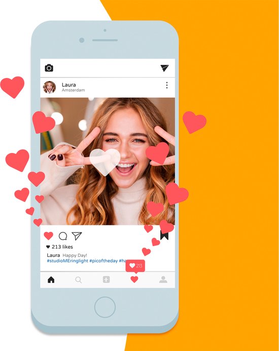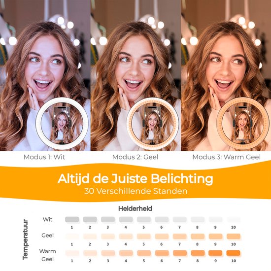 Mit der Studio ME Ringlampe mit Stativ kannst du ganz einfach Fotos oder Videos erstellen, die sich von den anderen Inhalten in den sozialen Medien abheben und glänzen. Dank der einstellbaren Helligkeit können Sie jedes Detail auf ganz natürliche Weise beleuchten. Selbst in dunklen Umgebungen können Sie bestimmte Details hervorheben, z. B. Ihr ganzes Gesicht oder das Funkeln in Ihren Augen. Neben der Helligkeit haben Sie auch die volle Kontrolle über die Farbtemperatur des Lichts, so dass Sie die ideale Atmosphäre schaffen können.Mit diesem Ringlicht und Stativ können Sie die perfekte Atmosphäre schaffen. Mit diesem Ringlicht erstellen Sie Bilder, die sofort die Aufmerksamkeit für Ihren Instagram-Post oder Ihr TikTok-Video auf sich ziehen.