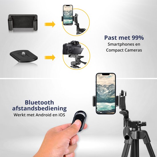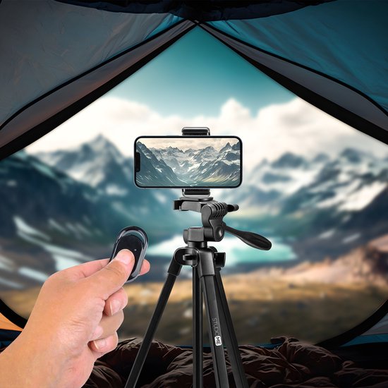 Studio ME Telefonstativ - 136 cm - Stativ Smartphone - Schwarz - Kamerastativ - Telefonhalterung - Inkl. Bluetooth-Fernbedienung - Stativ Telefon