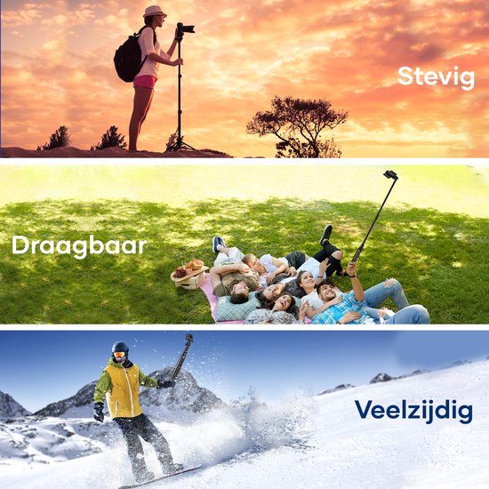 Das Stativ ist perfekt für Ihr ideales Foto oder Video. Die Höhe ist von 52 cm bis 171 cm verstellbar und der robuste Drehteller kann um bis zu 180 Grad gedreht werden. Außerdem haben Sie eine Bluetooth-Vorrichtung, mit der Sie Ihre Kamera oder Ihr Smartphone aus der Ferne aktivieren können. Perfekt, um diesen einen perfekten Moment festzuhalten!