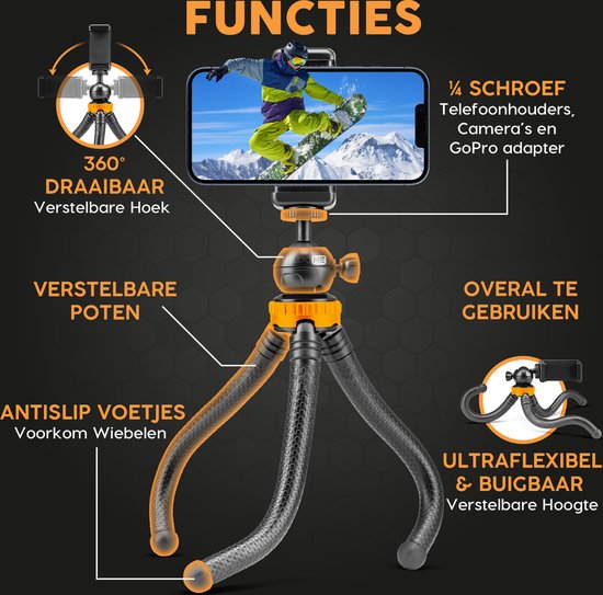 - Was ist im Karton: Octopus Stativ Telefon, Telefonhalter, Action Cam Halter, Bluetooth Fernbedienung, Handbuch, Verpackung