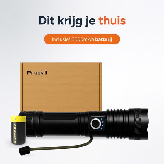 Taschenlampe LED wiederaufladbar - inkl. Batterien - Für Kinder und Erwachsene - Wasserdicht - Mini-Militär-Taschenlampen - 1500 Lumen - Proskill