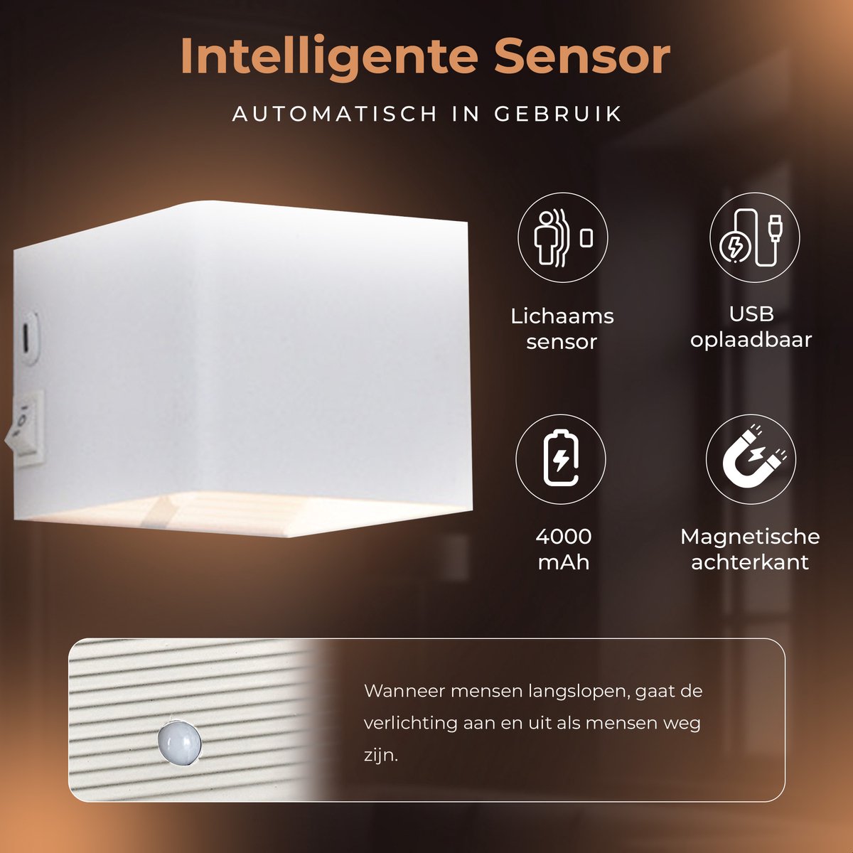 Techvavo® Wiederaufladbare Wandleuchte - 2 Stück - Kabellos, Smart, Weiß - Für Wohnzimmer, Badezimmer, Kinderzimmer, Schlafzimmer - 12x6x4 cm