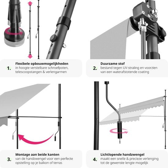 - Multifunktionale Klemmmarkise mit leichtgängiger Kurbel