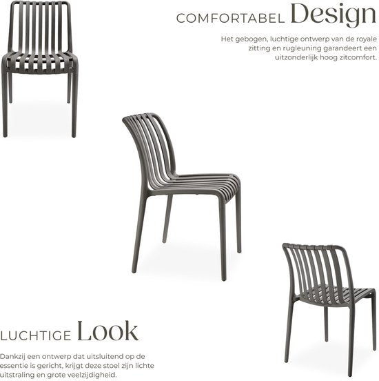 Die breite Rückenlehne und die großzügige Sitzfläche passen sich perfekt an den Körper an und sorgen für ein entspanntes Sitzerlebnis, auch bei längerem Gebrauch. Aus hochwertigem Kunststoff gefertigt, sind die Stühle besonders pflegeleicht und witterungsbeständig - sie eignen sich perfekt für den Einsatz im Freien. Neben der ausgezeichneten Witterungsbeständigkeit bieten die Stühle auch ein Höchstmaß an Stabilität und Belastbarkeit.