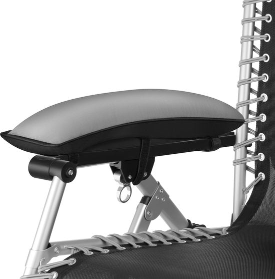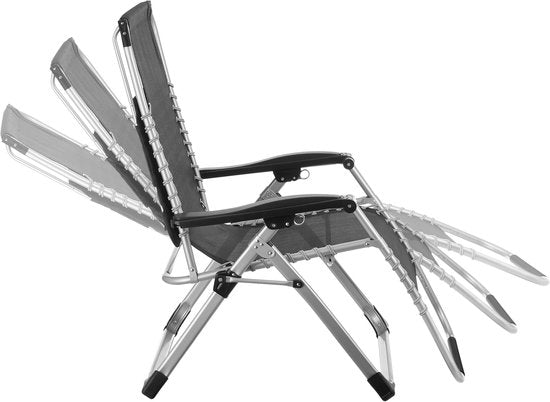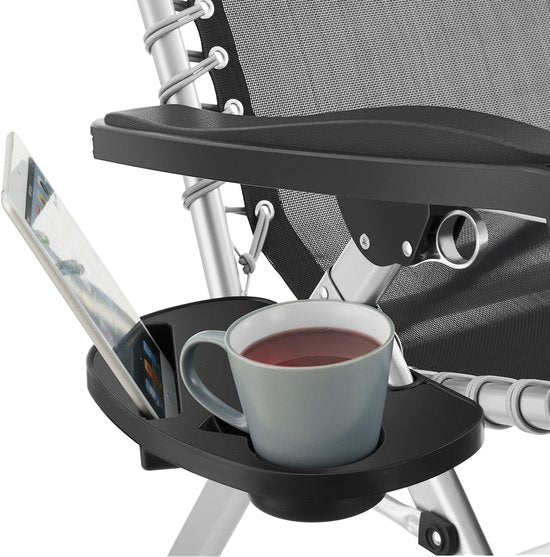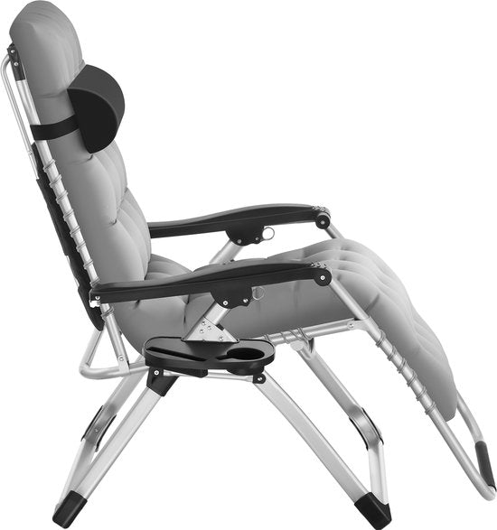 MerkmaleDas pulverbeschichtete Stahlgestell überzeugt nicht nur durch seine Stabilität und Tragfähigkeit. Ein praktischer Beistelltisch eignet sich perfekt zum Abstellen von Getränken und dem Smartphone, während die integrierte Ablagetasche ausreichend Platz für Zeitschriften, Sonnenbrände und andere Utensilien bietet.