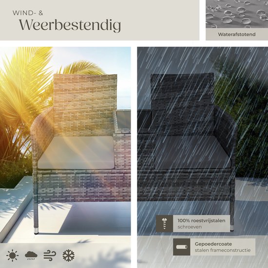 - Material: Gestell aus beschichtetem Stahl / Geflecht / Kissen aus 100% Polyester / Beine aus Kunststoff