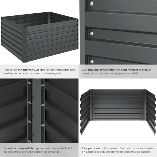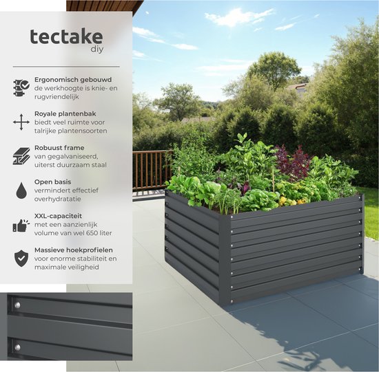 tectake - Pflanzkübel Blomma - Blumenkästen für den Außenbereich Rechteckig - Inklusive Arbeitshandschuhe - Verzinkter Stahl - Stabil und wetterfest - 120 x 100 x 56 cm - Gartenbeet für Kräuter, Gemüse und Blumen - Anthrazit