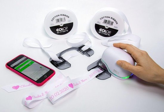 Am besten mit Colop e-mark® Bändern (100% Baumwolle) zu verwenden