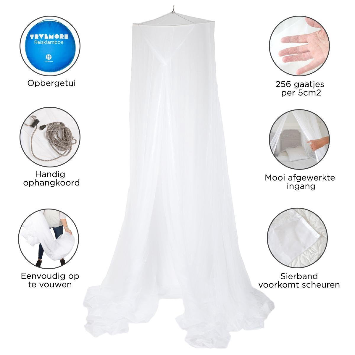 TRVLMORE Double XL Moskitonetz de Luxe - Rundes Moskitonetz - Reise-Moskitonetz - Anti-Moskitonetz geeignet für Doppelbett - Extra groß - mit Aufhängeschnur - Weiß