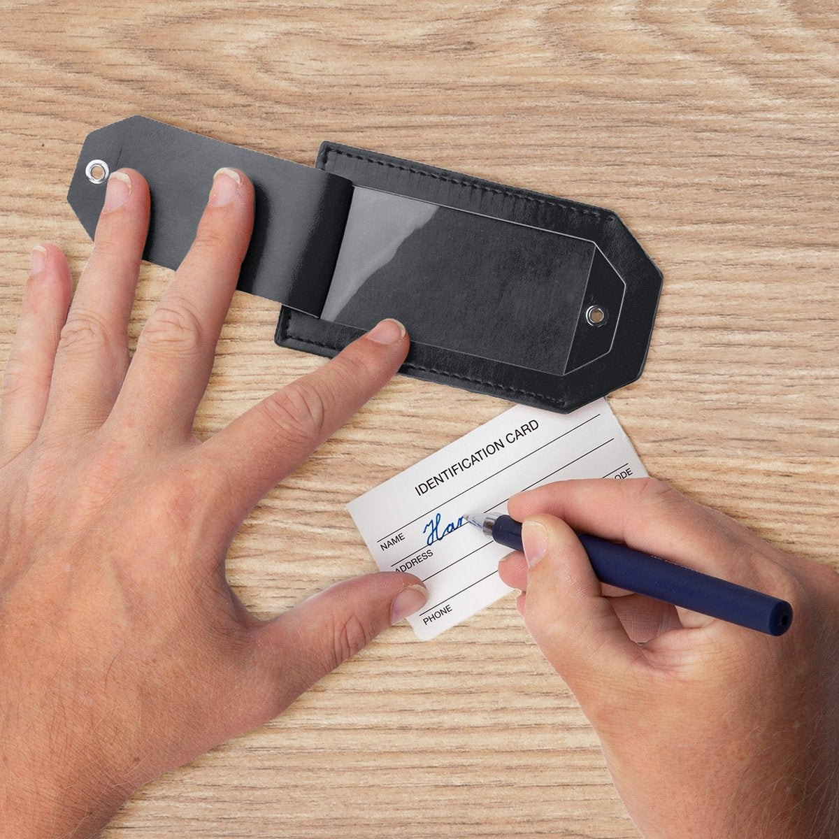 Auf der Innenseite des Kofferanhängers befindet sich ein beschreibbares Etikett für Ihre persönlichen Daten, das durch eine Sichtschutzhülle geschützt ist. Sollte Ihr Gepäck verloren gehen, kann es sofort identifiziert werden.