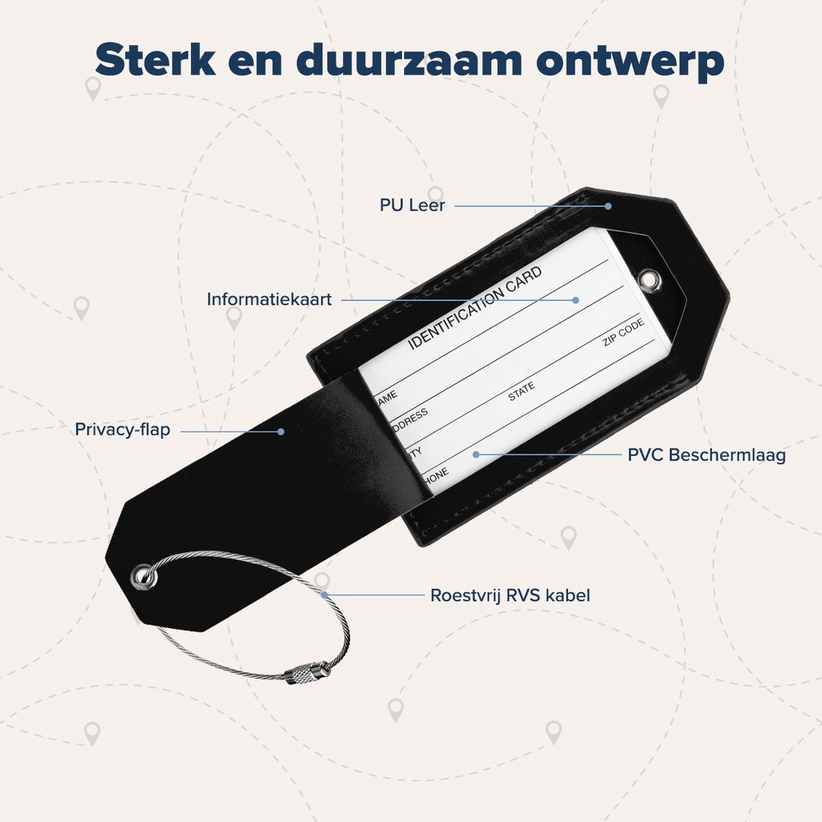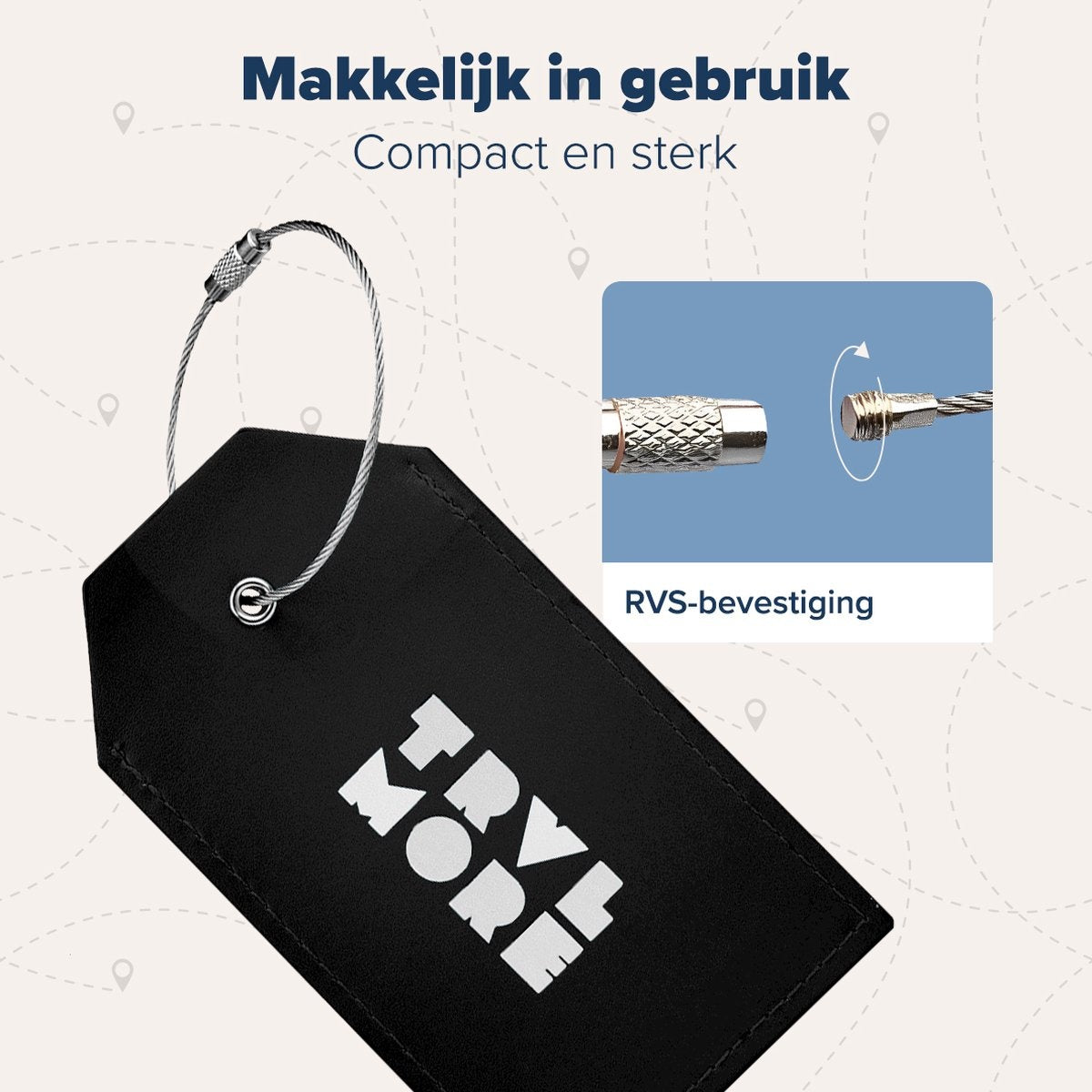 TRVLMORE Gepäckanhänger - Leder - Für Koffer und Taschen - 4 Stück - Schwarz