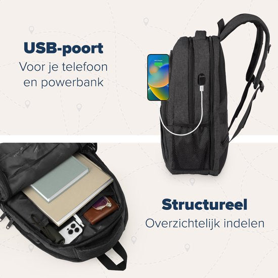 TRVLMORE Rucksack - 28L - 15.6 Zoll - Laptop-Rucksack - Schultasche Laptop-Tasche - Spritzwassergeschützt - Männer und Frauen - Anthrazit