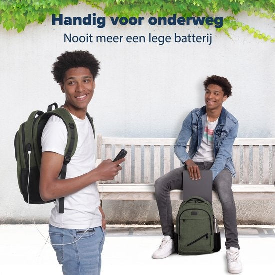 Schnell und einfach Laptop, Bücher, Powerbank, Wasserflasche und Federmappe einpacken? Kein Problem! Mit der Schultasche von TRVLMORE fängt das neue Schuljahr gut an. In die Schultasche passt ein Laptop bis zu 15,6 Zoll und es bleibt immer noch genug Platz für alle anderen Schulsachen. Du kannst dein Handy oder deinen Laptop ganz einfach über eine Powerbank aufladen? Das ist kein Problem. Schließen Sie Ihr Handy oder Ihren Laptop mit einem USB-Kabel an die USB-Buchse an der Seite der Tasche an. So kann die Powerbank einfach in der Tasche bleiben.