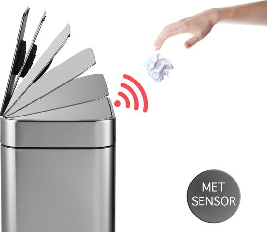 Dieser Mülleimer von Umuzi Cleaning ist nicht nur eine elegante Ergänzung für Ihre Küche, sondern bietet auch eine hygienische und bequeme Lösung. Dank des eingebauten Sensors brauchen Sie den Mülleimer nicht zu berühren; er öffnet sich automatisch durch die vom Sensor erfasste Wärme. Der Sensor wird mit AA-Batterien betrieben (nicht im Lieferumfang enthalten)
