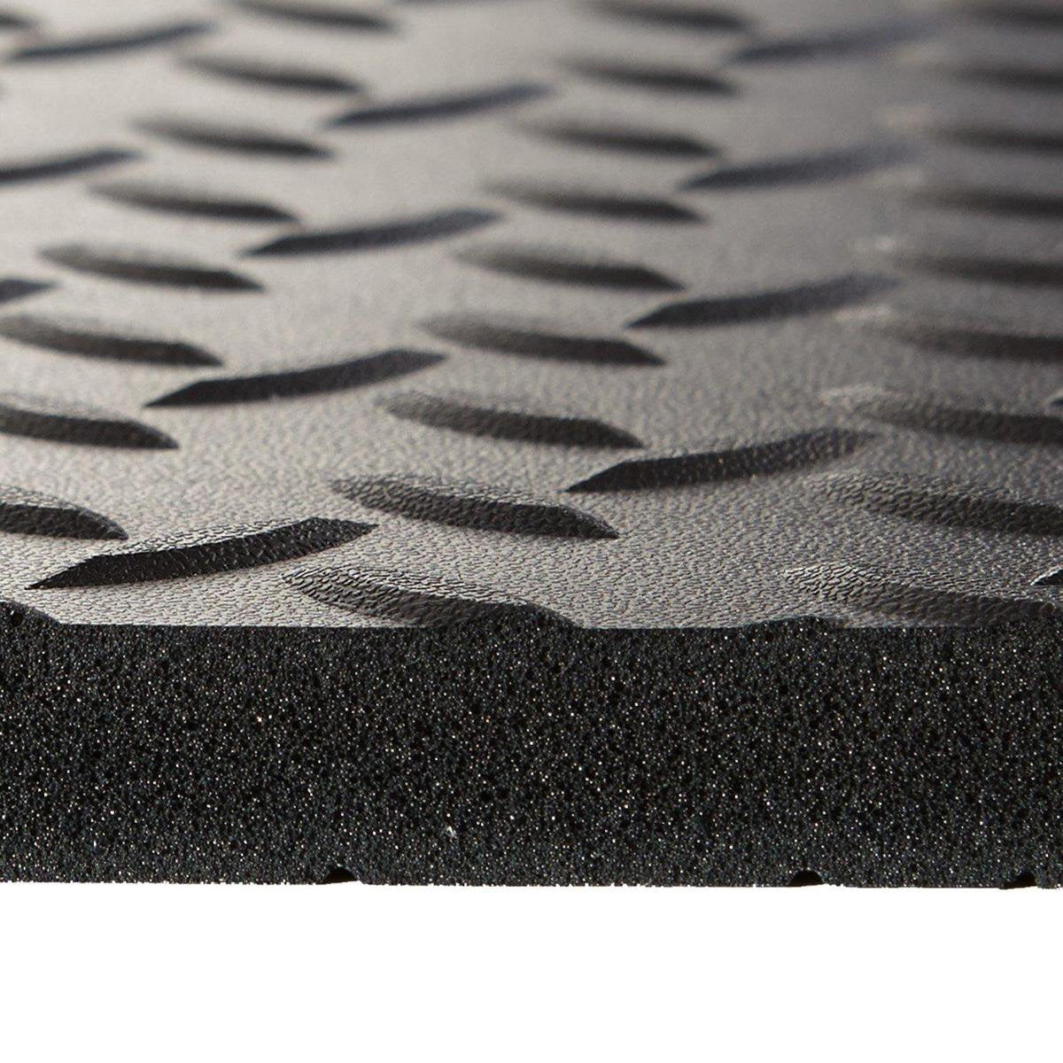 Das Rautenprofil der Matte sorgt für zusätzlichen Halt und Stabilität und reduziert die Gefahr des Ausrutschens. Gleichzeitig reduziert die Polsterung die Belastung von Füßen, Knien und Rücken und macht Ihren Arbeitstag angenehmer und produktiver.