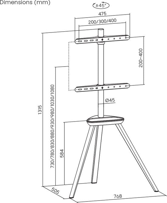 - Einstellbarer Betrachtungswinkel: Der TV-Bildschirm kann für ein optimales Seherlebnis um bis zu 45 Grad nach links und rechts gedreht werden.