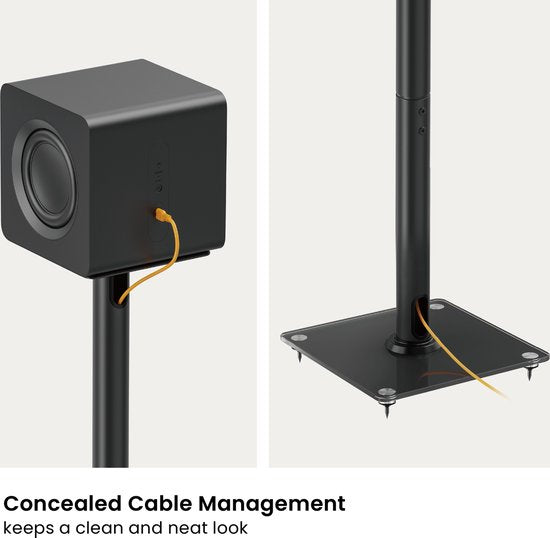 Dieses Paar Bodenständer für Lautsprecher bietet hervorragende Stabilität und Klangwiedergabe für jedes Setup. Mit einer Tragfähigkeit von 25 kg pro Ständer und einer robusten Stahlkonstruktion garantieren diese Ständer, dass Ihre Lautsprecher fest an ihrem Platz bleiben. Das Schutzpolster auf der Oberseite reduziert unerwünschte Resonanzen für einen klaren Klang. Die verdeckte Kabelführung sorgt für ein sauberes, aufgeräumtes Erscheinungsbild. Außerdem sind zwei Arten von Füßen im Lieferumfang enthalten: rutschfeste Flachfüße für harte Böden wie Holz und Fliesen und scharfe Spikes für Teppichböden, so dass Sie sich immer einer optimalen Stabilität sicher sein können.