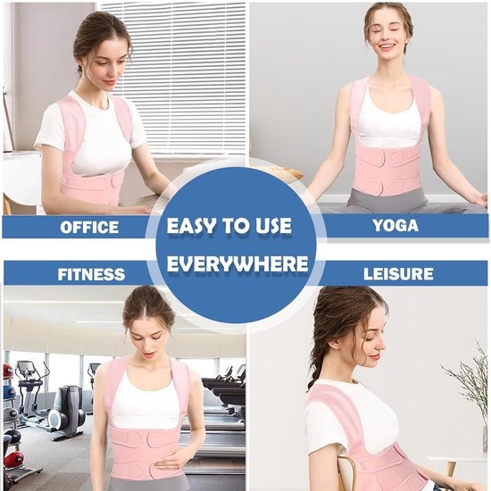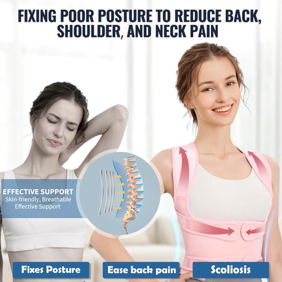 Verstellbarer Rückenbegradiger - Stützgürtel - Haltungskorrektur - Rückenschmerzlinderung für Frauen und Männer - (Pink, M)