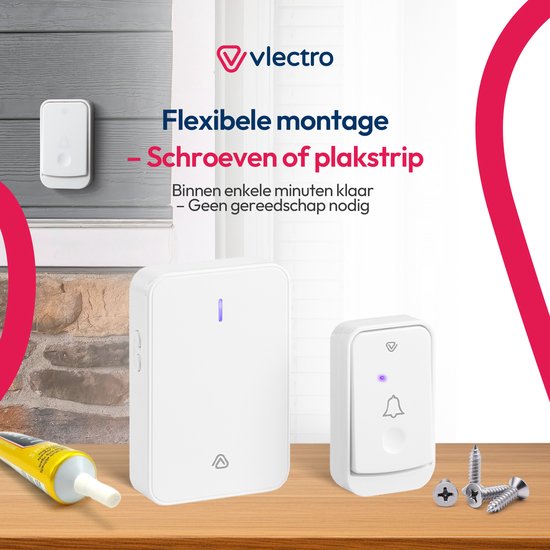 Vlectro - Drahtlose Türklingel mit 2 Empfängern - Weiß - Türklingel mit 2 Empfängern