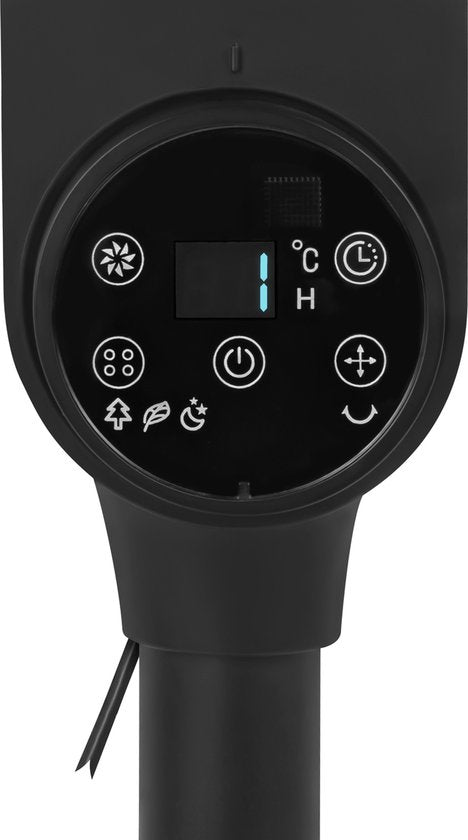 Dieser VONROC Bodenventilator bietet kühle Erfrischung in jedem Raum. Dieses elegant gestaltete Dreibeinmodell verfügt über ein Bedienfeld mit LED-Anzeige und luxuriösen Touch-Bedienelementen. Mit 3 einstellbaren Geschwindigkeiten (sanft, mittel, stark) und einem 12-Stunden-Timer ist er eine vielseitige Wahl. Die Oszillationsfunktion sorgt für eine gleichmäßige Luftverteilung, und mit dem manuell um 180° schwenkbaren Kopf kommt die frische Luft immer aus dem richtigen Winkel! Es handelt sich um einen Ventilator mit Fernbedienung, so dass Sie ihn von überall aus bedienen können. Ein nettes Detail: der Ständer hat eine praktische Öffnung, in der Sie die Fernbedienung aufbewahren können.