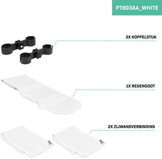 Wollen Sie Ihre Partylocation mit zusätzlichen Zelten erweitern? Nutzen Sie das VONROC-Kopplungssystem! Mit diesem System können Sie ganz einfach zwei Partyzelte miteinander verbinden und so ein stabiles und wetterfestes XL-Vordach schaffen. Das Set besteht aus zwei Verbindern für eine solide Verbindung der Zeltstrukturen, einer Regenrinne für eine effiziente Wasserableitung und zwei Seitenwandverbindern für eine nahtlose, wasser- und winddichte Verbindung der (optionalen) Seitenwände. Kurz gesagt, dieses Set hält Ihre Zelte fest zusammen und sorgt für einen trockenen Durchgang zwischen den Zelten. Ideal für größere Feste, Märkte oder Veranstaltungen!