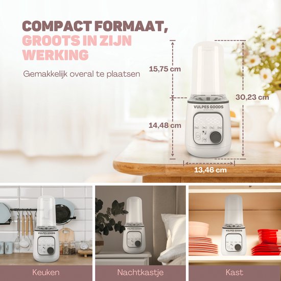 Erleben Sie den schnellsten und vielseitigsten Flaschenwärmer PRO von bol.com! In der Welt der Elternschaft gibt es eine Situation, die jeder kennt: Ihr Baby ist hungrig und sehnt sich nach einer warmen Flasche Milch. Aber manchmal scheint es ewig zu dauern, bis die Milchflasche die ideale Temperatur für Ihr Baby erreicht hat. Die Kleinen werden ungeduldig und fangen an zu weinen. Zum Glück können diese unangenehmen Momente jetzt mühelos vermieden werden, dank des 10-in-1-Flaschenwärmers von Vulpes Goods® BabyCare. Mit diesem revolutionären Flaschenwärmer gehören lange Wartezeiten und ungleichmäßig erwärmte Milch der Vergangenheit an!