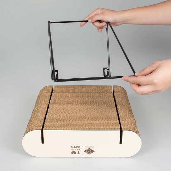 Der David ist mit einem eleganten Metallgestell und einem stabilen Regalboden aus Wellpappe ausgestattet, den Sie einfach am Gestell befestigen können. Die Wellpappe ist auch ideal zum Kratzen. Sollte die Pappe abgenutzt sein, können Sie den David einfach nachfüllen.