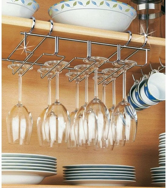 - Befestigen Sie dieses Gestell unter dem Küchenschrank und Sie können 12 Weingläser darin aufhängen