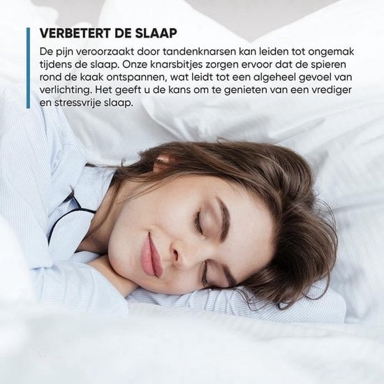 ? VERBESSERT DIE SCHLAFQUALITÄT: Zähneknirschen beeinträchtigt nicht nur Ihre Zähne, sondern auch Ihren Schlaf, Ihre Konzentration und Ihre Stimmung. Wenn Zähneknirschen Sie oder Ihren Partner nachts wach hält, beeinträchtigt dies Ihr tägliches Leben. Schlafmangel hat auch andere Nachteile, die sich langfristig sehr nachteilig auf Ihre Gesundheit auswirken können.
