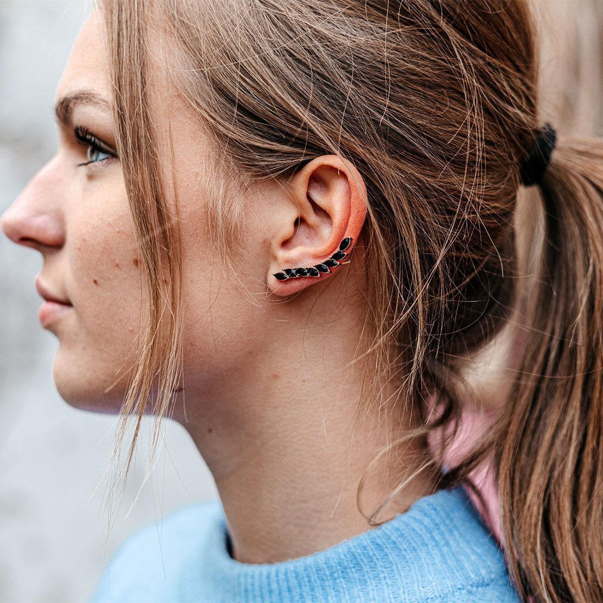 Yolora Damen Ohrringe - Kalpa Camaka Kristalle - Gold - Schwarzer Kristall - 18K Gelbgold vergoldet - Damen Ohrringe Gold - Schmuck - Luxuriöse Geschenkbox - Geschenkbox - Exklusive Geschenkbox - Schöne Geschenkverpackung