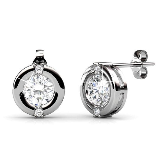 Yolora Damen Ohrringe mit runden Kalpa Camaka Kristallen - Farbe Silber - 18K Weißgold plattiert - Geschenk zum Muttertag